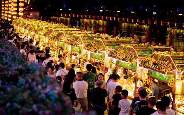 “夜游锦江”河畔的东门码头市集。(成都文旅集团供图)
